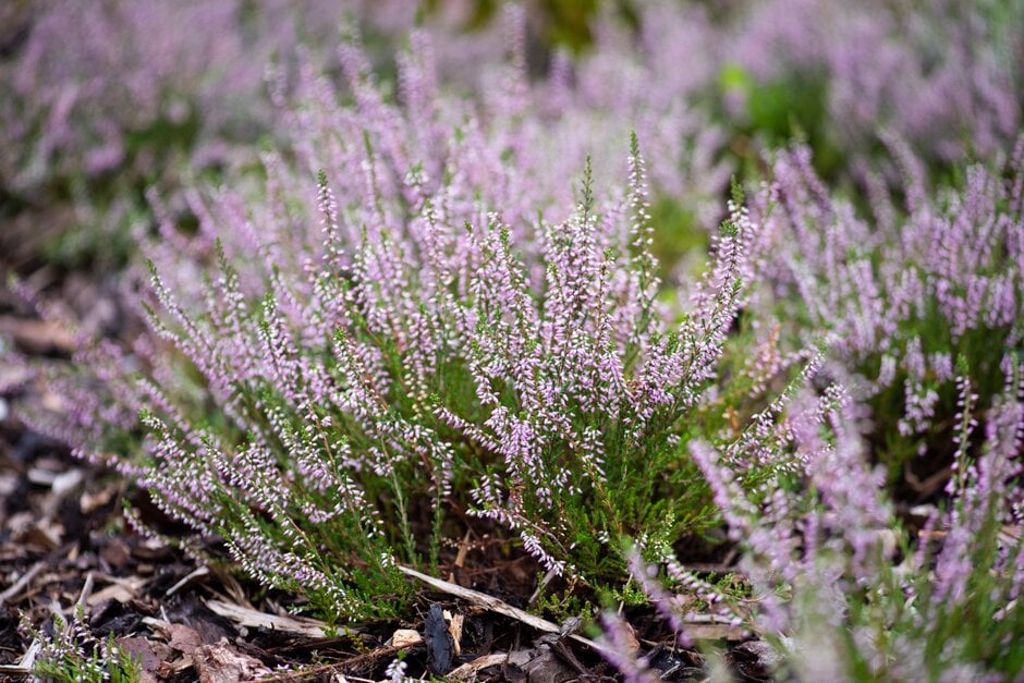 Calluna are low-growing or dwarf evergreen shrubs with stems clothed in tiny overlapping leaves, and terminal, spike-like racemes of small, 4-petalled flowers with coloured calyces