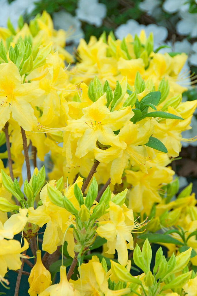 A deciduous azalea to about 1.5m high, with elliptic, slightly glossy light green leaves. Produces clusters of up to 9 funnel-shaped, scented flowers, pale golden yellow with vivid yellow spots, in late spring. Leaves turn yellow with pink and purple tints in autumn