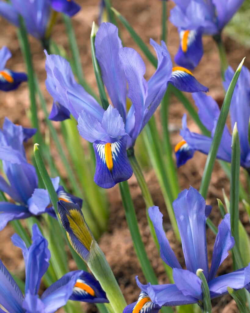 - Reticulata irises are small, bulbous perennials with narrow leaves almost square in section, and solitary, sometimes fragrant purple, yellow or blue flowers in early spring