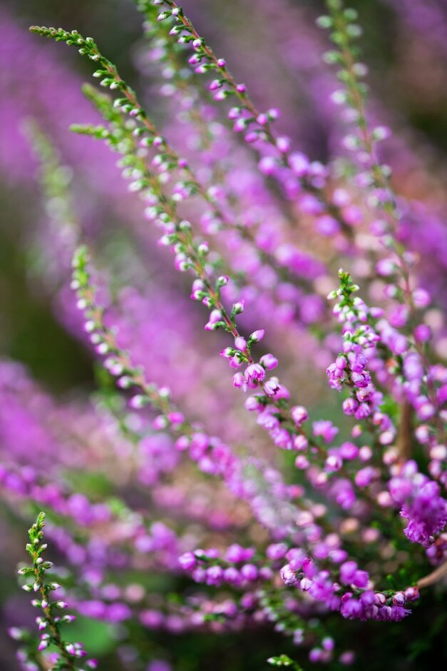 Calluna are low-growing or dwarf evergreen shrubs with stems clothed in tiny overlapping leaves, and terminal, spike-like racemes of small, 4-petalled flowers with coloured calyces