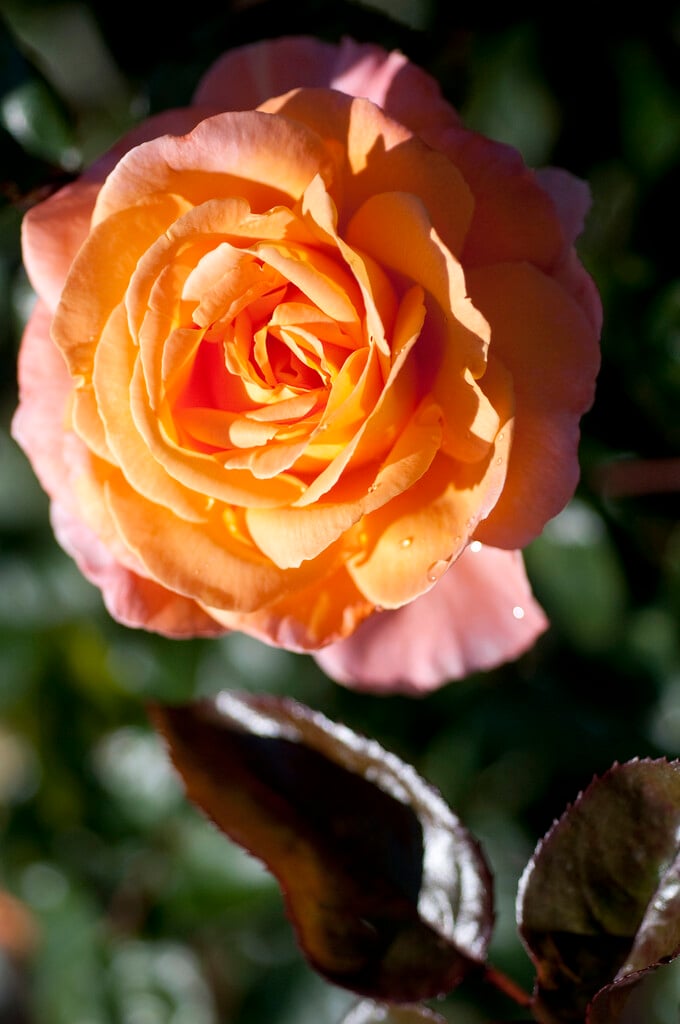 Bushy rose to 1.1m tall, with young red tinted leaves maturing to dark green and clusters of very fragrant, shapely, fully double blooms to 12cm across, in warm tones of orange and pink, repeat-flowering through summer and autumn