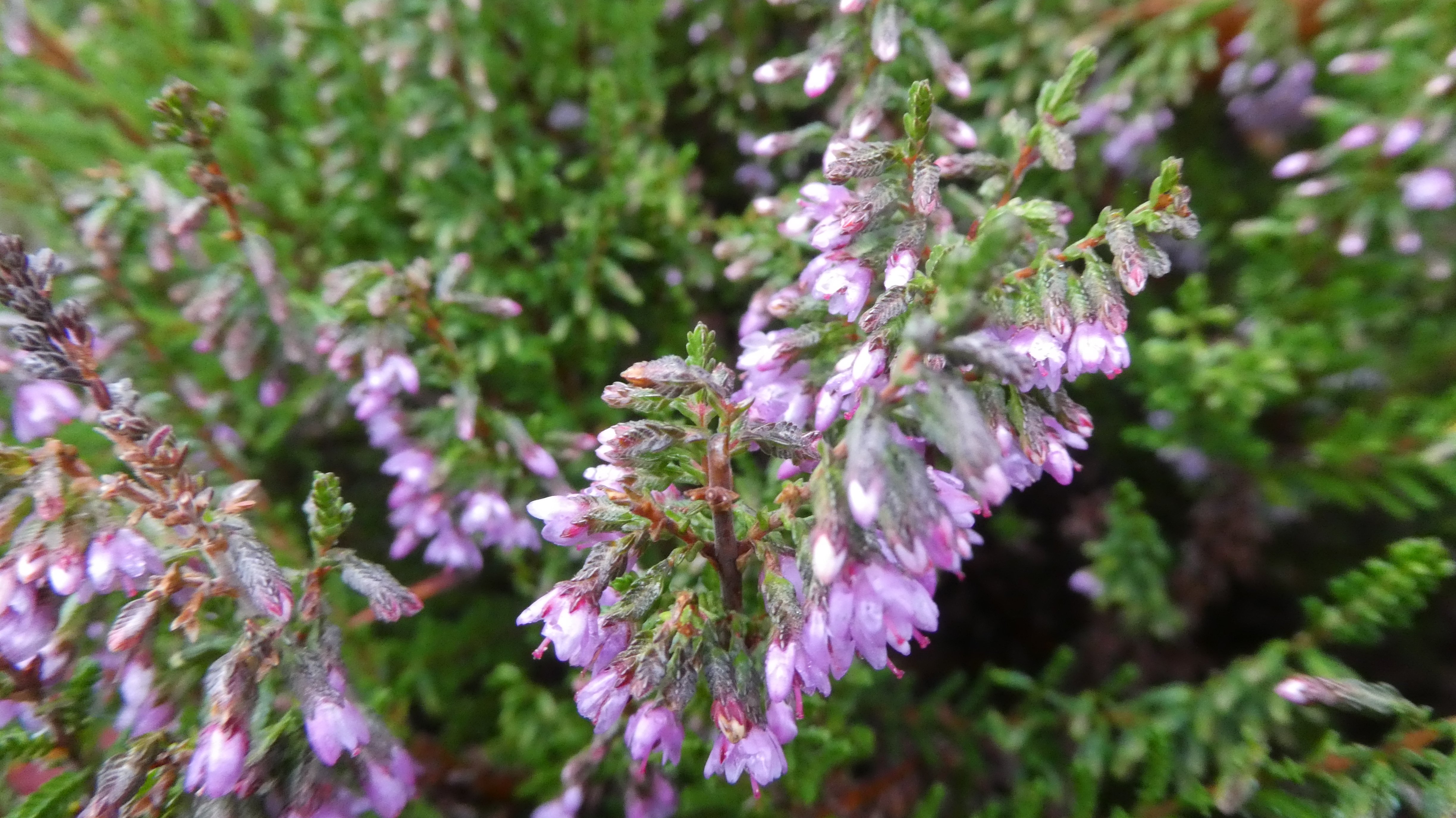Calluna are low-growing or dwarf evergreen shrubs with stems clothed in tiny overlapping leaves, and terminal, spike-like racemes of small, 4-petalled flowers with coloured calyces