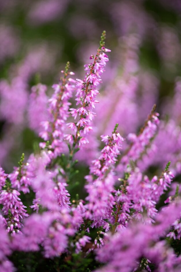 Calluna are low-growing or dwarf evergreen shrubs with stems clothed in tiny overlapping leaves, and terminal, spike-like racemes of small, 4-petalled flowers with coloured calyces