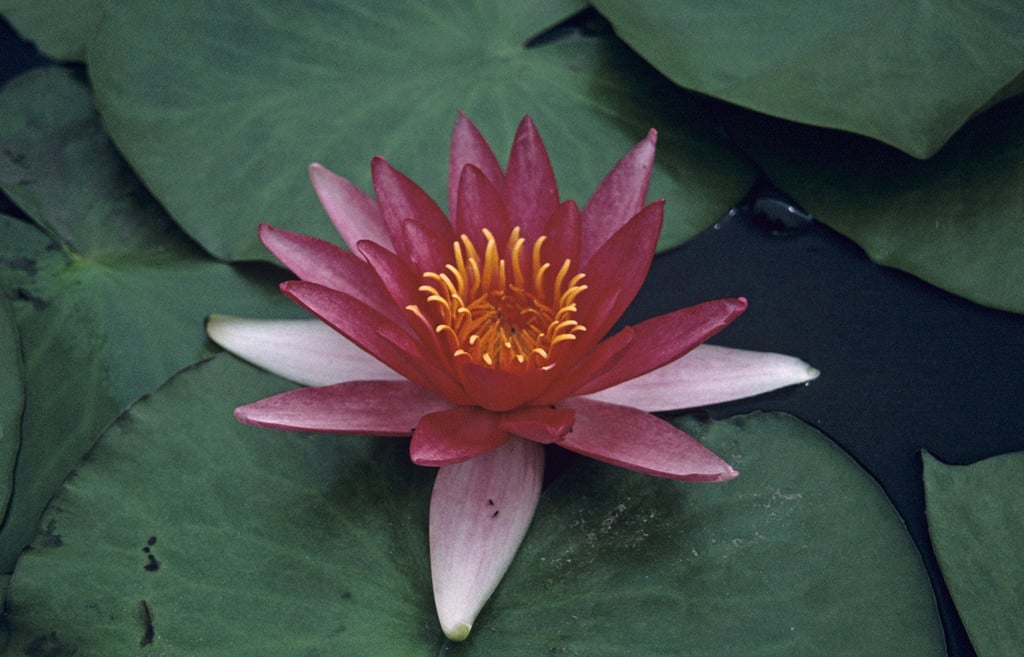 Nymphaea are rhizomatous, submerged aquatic perennials with floating, rounded leaves and showy, sometimes fragrant, cup- or bowl-shaped flowers in a wide range of colours, held on or above the water and followed by submerged, berry-like fruits