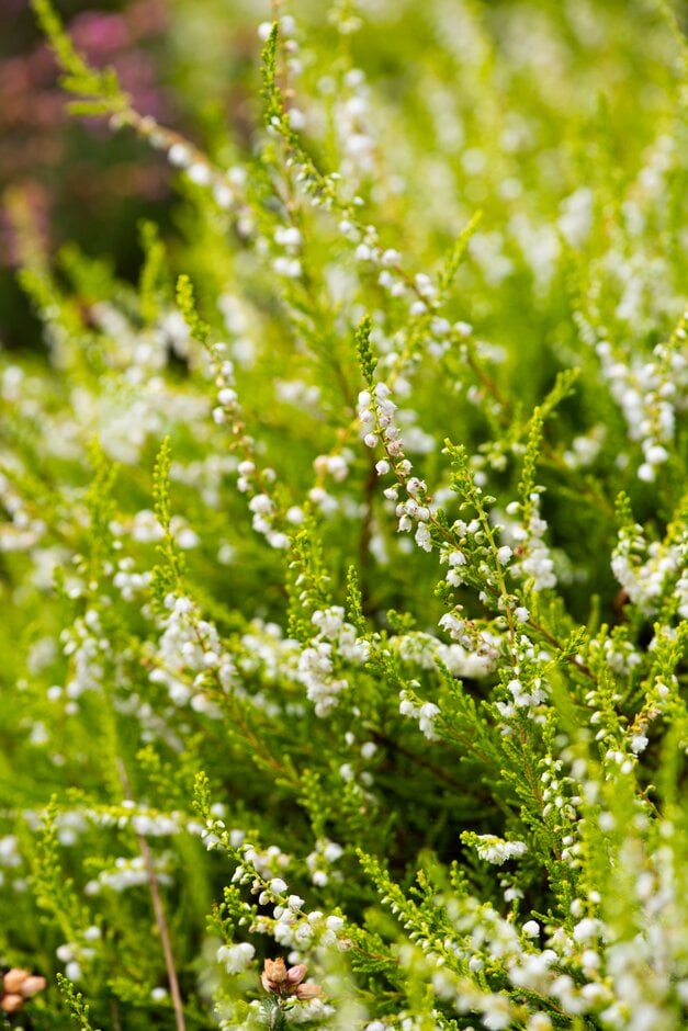 Calluna are low-growing or dwarf evergreen shrubs with stems clothed in tiny overlapping leaves, and terminal, spike-like racemes of small, 4-petalled flowers with coloured calyces