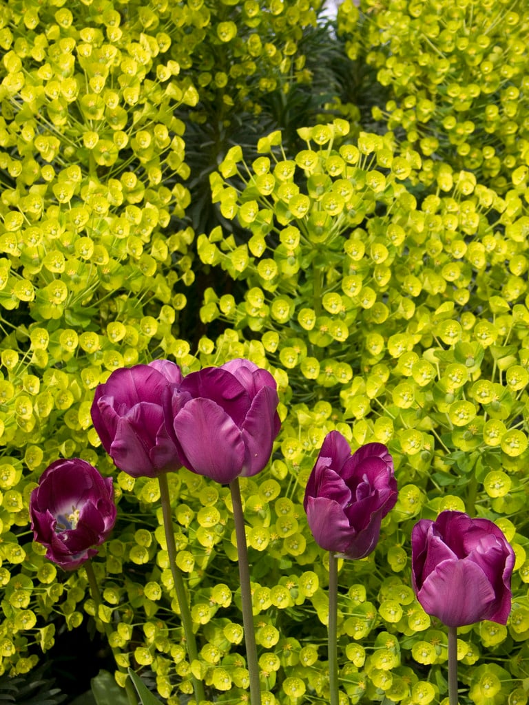 Euphorbia can be annuals, perennials, shrubs or succulents, with milky sap and small flowers held within cupped, often colourful bracts