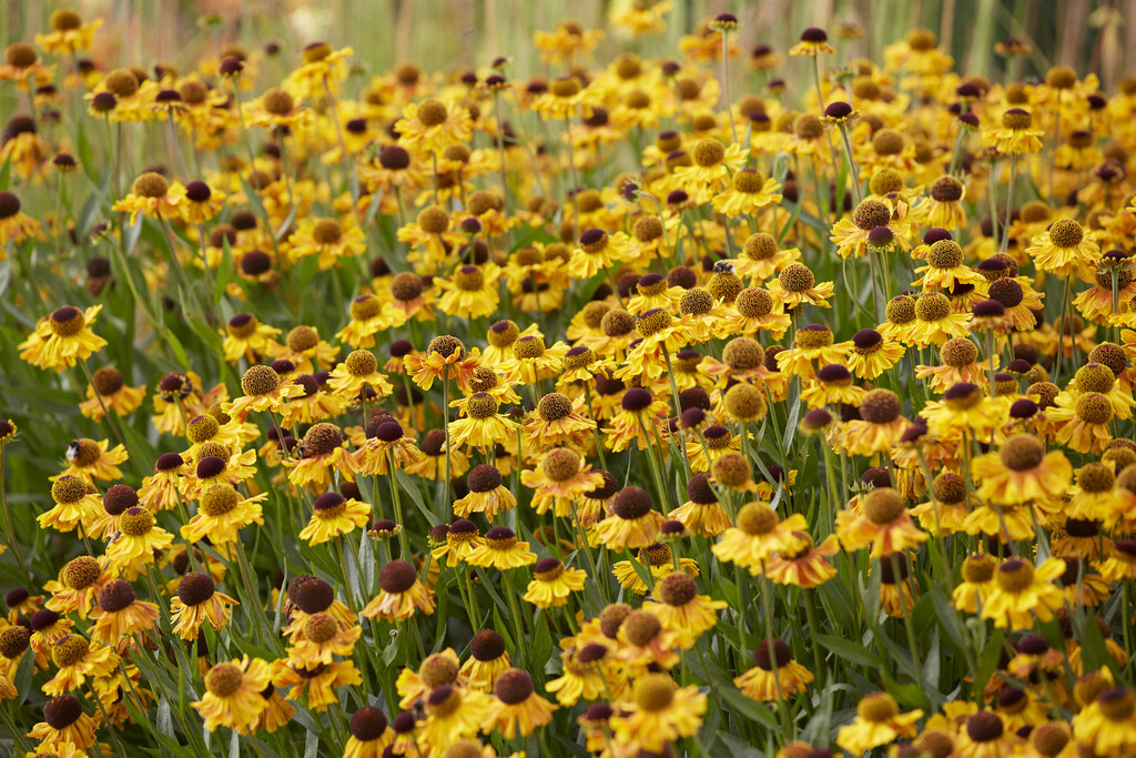 Helenium may be upright, clump-forming annuals, biennials or herbaceous perennials with simple leaves and showy daisy-like flower-heads over a long period