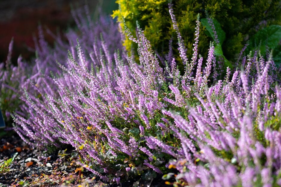 Calluna are low-growing or dwarf evergreen shrubs with stems clothed in tiny overlapping leaves, and terminal, spike-like racemes of small, 4-petalled flowers with coloured calyces
