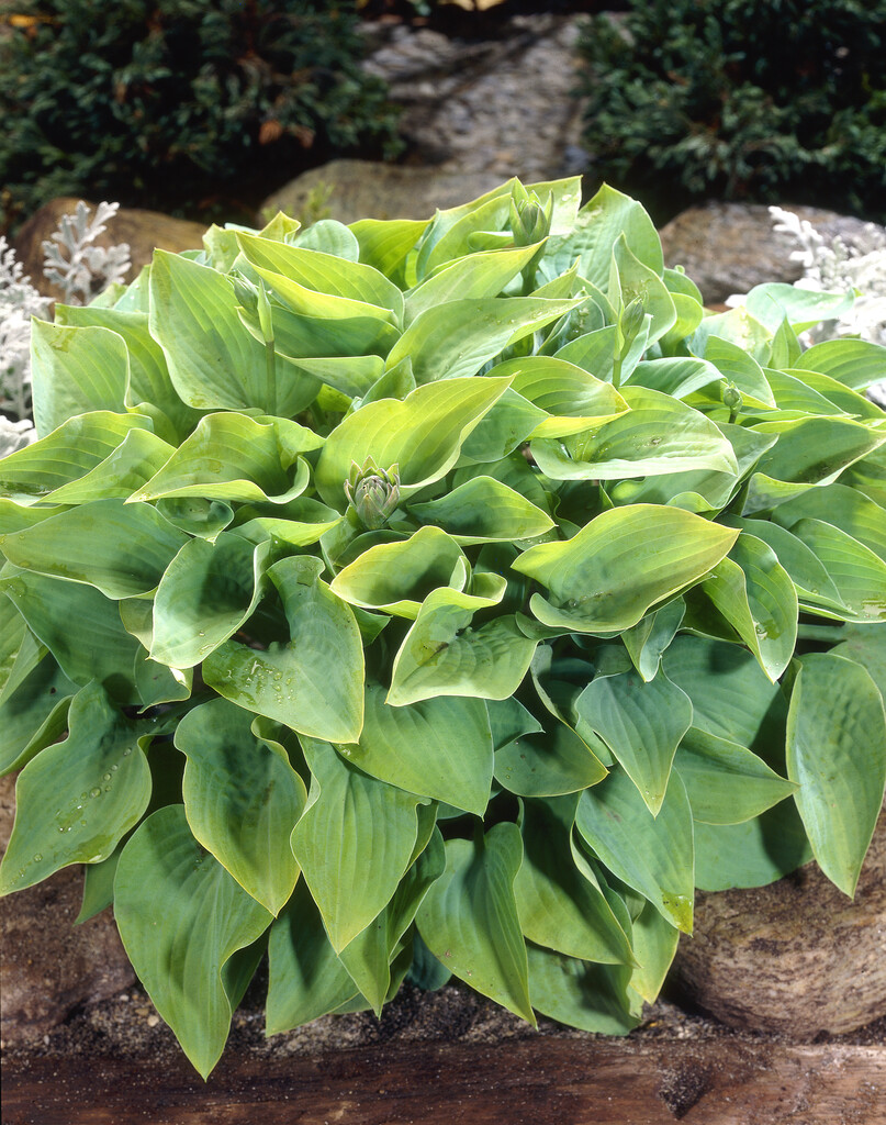 Grow in a lightly shady spot, leaf colour will be more green in deeper shade. Needs fertile soil that does not dry out, and shelter from cold, drying winds. Mulch annually in spring. Hostas in the ground may need watering during dry spells. See hosta cultivation for more detailed advice