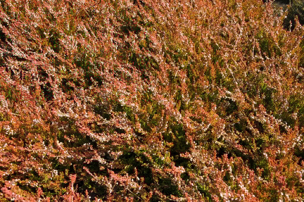 Calluna are low-growing or dwarf evergreen shrubs with stems clothed in tiny overlapping leaves, and terminal, spike-like racemes of small, 4-petalled flowers with coloured calyces