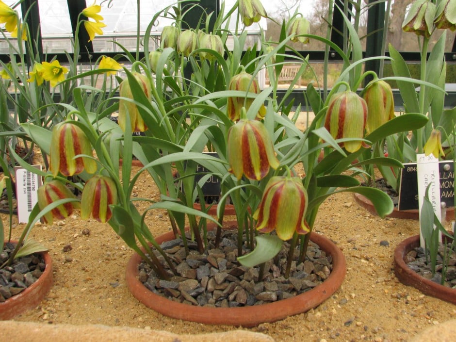 Fritillaria are bulbous herbaceous perennials with lance-shaped or linear leaves and nodding bell-shaped or bowl-shaped flowers that may be solitary or in racemes or umbels