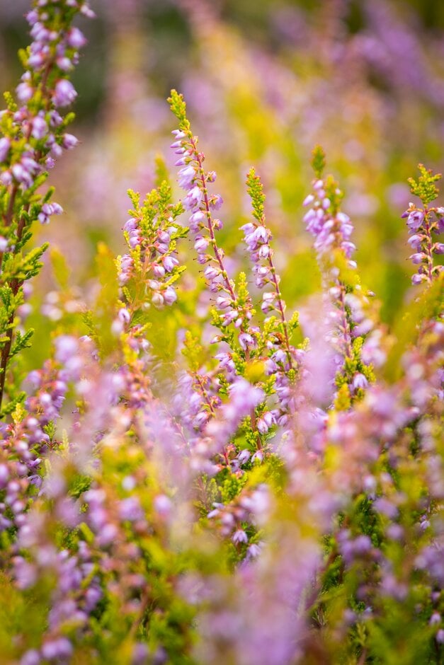 Calluna are low-growing or dwarf evergreen shrubs with stems clothed in tiny overlapping leaves, and terminal, spike-like racemes of small, 4-petalled flowers with coloured calyces