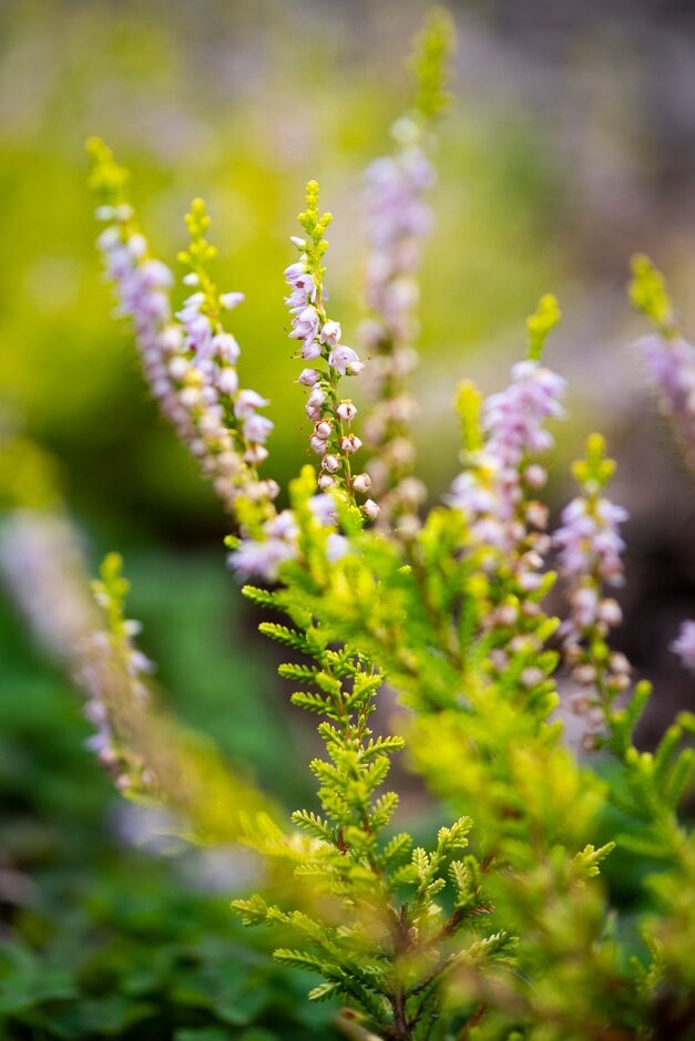 Calluna are low-growing or dwarf evergreen shrubs with stems clothed in tiny overlapping leaves, and terminal, spike-like racemes of small, 4-petalled flowers with coloured calyces
