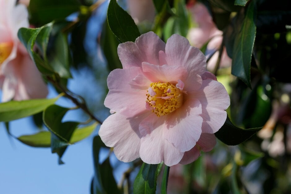 Suitable for woodland and acidic soils. Position in a site sheltered from cold, dry winds and early morning sun as buds and flowers may be damaged by cold winds and late frosts see camellia cultivation