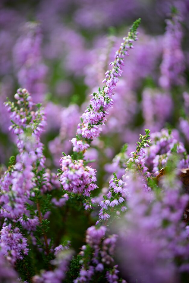 Calluna are low-growing or dwarf evergreen shrubs with stems clothed in tiny overlapping leaves, and terminal, spike-like racemes of small, 4-petalled flowers with coloured calyces