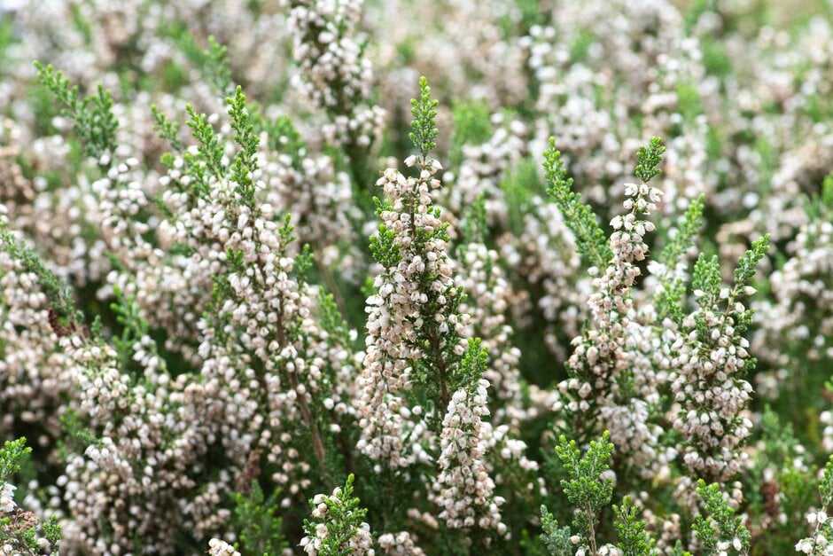 Calluna are low-growing or dwarf evergreen shrubs with stems clothed in tiny overlapping leaves, and terminal, spike-like racemes of small, 4-petalled flowers with coloured calyces