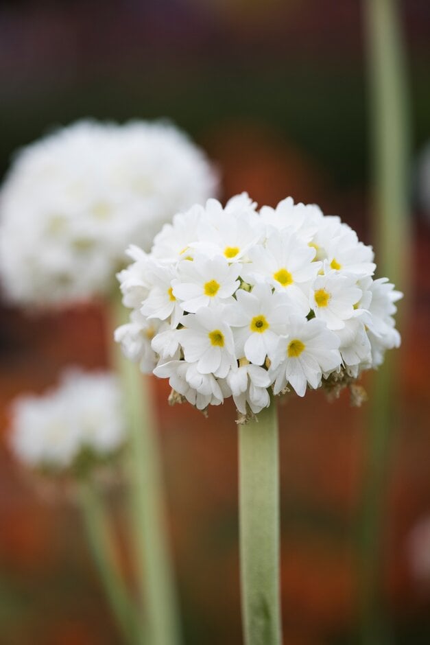 Denticulatae primulas have upright, toothed leaves and drumstick-shaped flowers on tall, slender stems which are most commonly purple, but also come in shades of white, blue, pink or red