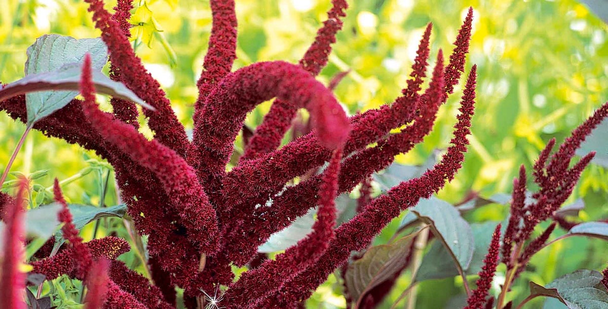 Amaranths come in a wide range of forms, but most have long, drooping or tall, upright flower spikes, in deep crimson, burgundy, lime green or gold. The foliage can be equally striking, with broad, green, red or purple leaves that give a lush, tropical appearance. They flower from midsummer to early autumn, with some varieties reaching over 1.5m tall.