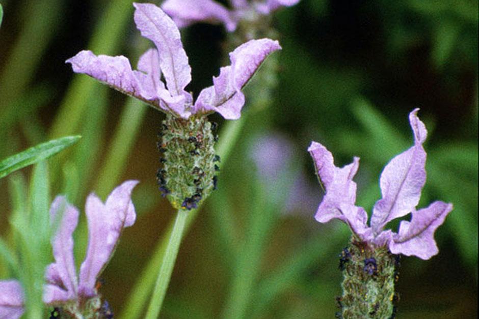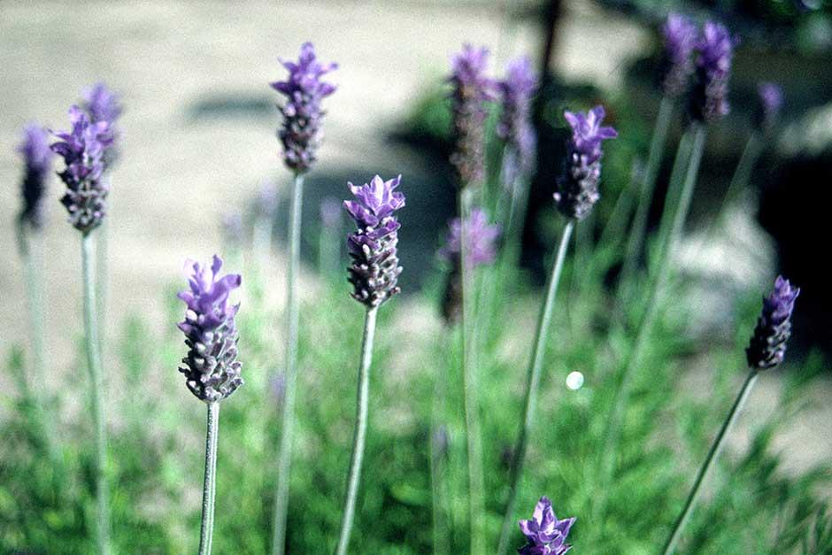 Easily identified by a headdress of perky sterile bracts, L. stoechas and its selections need sheltered, sunny sites. They flower in flushes from late May until end of August. Hardy-ish, but they need a favoured site (H3-4).