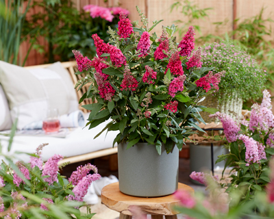 A unique and prolifically flowering butterfly bush in a new shade and scaled-down size that’s perfect for containers and small spaces