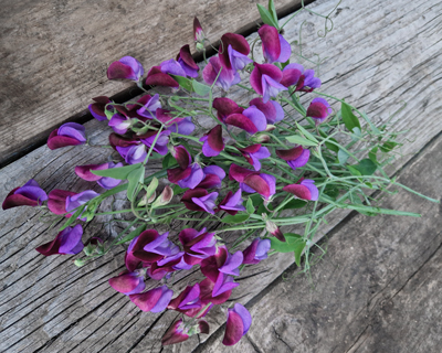 There are two sweet peas with bicoloured maroon and violet flowers, both bearing close similarities to the original wild sweet pea from Sicily, that have been popular for many years. In about 1955, ‘Matucana’ was selected in a garden in Peru for its exceptional scent; then in 1992, ‘Cupani’ was selected from wild plants for its larger flower size and improved vigour.Now a third