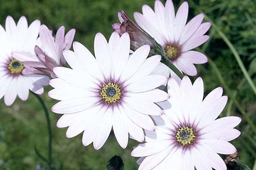 This prolific South African daisy spreads steadily across the soil, its rhizomes throwing up slender, slightly greyish leaves and vivid pink daisies, which are darker on the backs of the petals and have golden eyes. Hardier and more spreading than those grown as summer patio plants, it flowers for an unusually long season from spring well into autumn and is also good on steep slopes. Insists on sun. 30cm (12in).