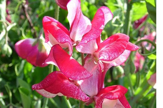 This annual sweet pea can be treated like ‘White Pearl’, tumbling over a sunny wall, but is shorter and more restrained. Its colour - white with red flecks and flakes - shows itself best on close inspection when the scent can also be enjoyed. Again, it needs encouragement for the stems to fall into place and, with new shoots coming from the base, flowering will continue for months if the plants are deadheaded. 60-90cm (2-3ft).