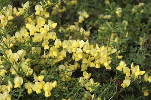 Tumbling tightly over sunny walls, the noticeably green twiggy branches carry short spikes of cream pea-like flowers which cover the plant in spring. With one bright burst of colour this hybrid between a French and a Spanish species is neat and well behaved, spreading and trailing much wider than its height. Cytisus x beanii, also an AGM plant, is similar but with bright yellow flowers. 30cm (12in).