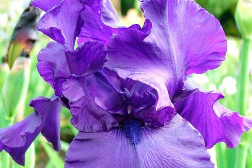 No perennial or mixed border is complete without tall bearded iris and 'Titan's Glory' features unusually large violet flowers with ruffled edges, plus the sparkle of a bright blue beard. The fragrant flowers have real presence, are at their best in June and enjoy full sun and any well-drained fertile soil. Every three years, divide and replant after flowering. 95cm (38in)