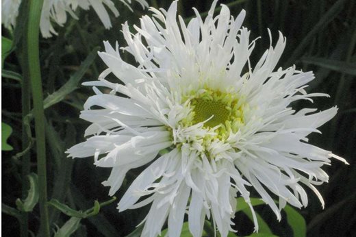 Shasta daisies were once little more than monster versions of the roadside ox-eye daisies but 'Aglaia' is typical of a more intriguing style. Its impressively frilly flowers have each slender petal prettily dissected at the tip; they open from June to September on relatively neat and bushy plants. Happy in full sun and any reasonable soil, usually needs discreet support. 50cm (20in)