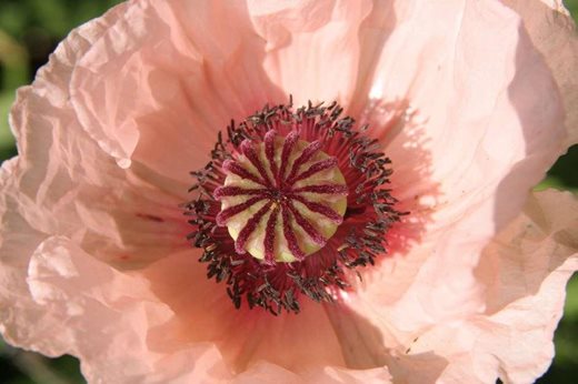 Oriental poppies come in both brash, vivid colours and delicate pastel shades and the soft pink of 'Karine', enlivened by a rather variable reddish basal zone, is a lovely May/June partner for tall bearded irises. Best with discreet support to prevent rain knocking them over, the foliage turns ragged after flowering but Cosmos planted nearby will expand to hide it. Happy in sun and most good soils. 60-70cm (24-28in)
