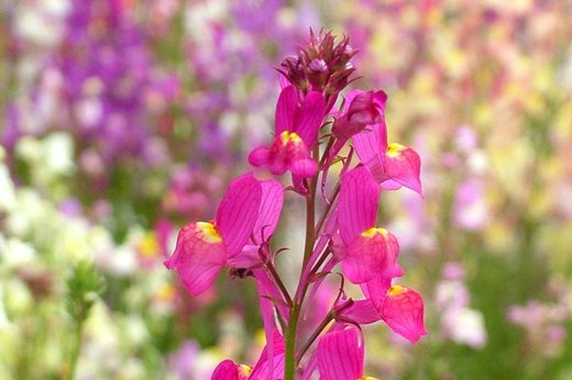 A regular star of RHS plant trials since 1953, Linaria maroccana Fairy Bouquet Group contains both pastel shades and brighter colours, and many bicolours. The dainty little flowers – like miniature antirrhinums – line the vertical stems which branch to form secondary spikes as the main spike fades. Blooming for a couple of months in summer, this is a lovely flower for informal summer cottage-style bouquets. Also worth sowing in the autumn. 38-45cm (15-18in). AGM