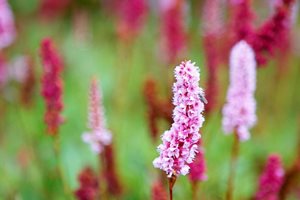 Persicaria affinis is the larger and more varied of the two, reaching 25cm (10in) in flower and spreading to 60cm (2ft) or more; its dark elliptical leaves develop lovely russet colouring, often as the flowers are at their peak. The pale pink flower spikes fade to rich rosy red over many weeks, so that flowers in a variety of harmonious shades are open together. ‘Donald Lowndes’ is a little shorter and neater than other forms at 20cm (8in).