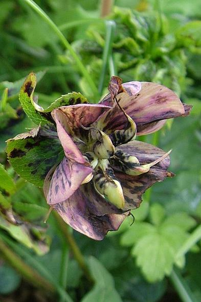 The so-called hellebore black death is more serious. There is no cure for this virus disease and infected plants should be dug up and destroyed.