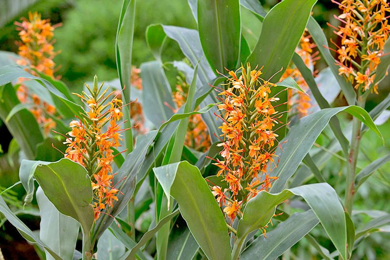 We usually think of buying ginger in the supermarket rather than growing it in the garden, but this autumn-flowering ornamental ginger is so good it has received an AGM. Hedychium ‘Tara’ is an imposing plant with slightly leathery lance-shaped foliage and impressive heads of fragrant reddish-orange flowers. Best with good drainage and high fertility, it needs protection over winter in cooler areas. Good for dramatic effect. 2m. Hardiness rating H4.