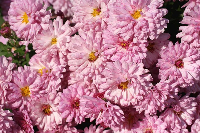 Chrysanthemums are always associated with autumn and even hardy types come in a vast variety of colours and forms. Chrysanthemum ‘Mei-kyo’ is one of the prettiest and most manageable. Making a neat, twiggy plant with unusually small foliage, for a couple of autumn months it produces small, button-like pompom flowers in pale purplish pink. The original