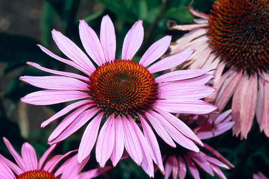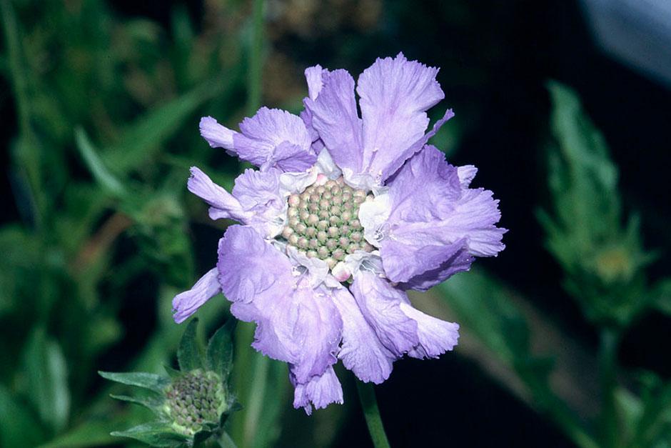 Strangely unfashionable, but beautifully coloured, prolific and long lasting, the large, lavender blue flowers open on long stems in July and August above greyish foliage. Needs sun and a well-drained soil and is much appreciated by bees and butterflies. Best cut before the central florets open. Young plants are the most prolific so divide regularly. 45cm (18in). H4.