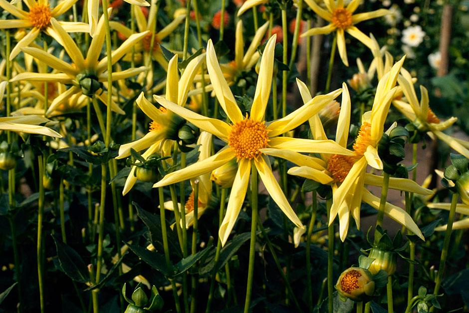Dahlias come in such vast variety that it’s impossible for even the finest florists to stock all those that appeal. But they’re so easy to grow, and tubers and rooted cuttings are easily available by mail order, that we can all grow those we especially enjoy - like ‘Honka’, with its rolled petals creating starry single flowers. 60cm (2ft). H3.