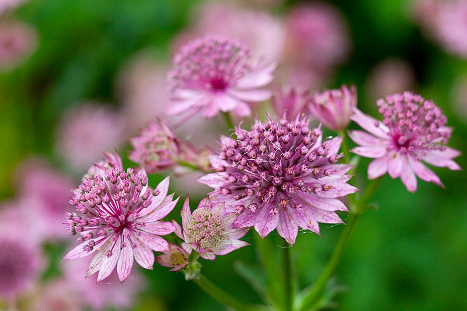 The best astrantias not only come in lovely colours, pastel and dark, but the intriguing shape of their flowerheads repays the close inspection that cut flowers always receive. ‘Roma’ is especially prolific and also sterile, so the flowers last unusually well; their rich pink colouring is lovely with old roses. 60cm (2ft). H7.