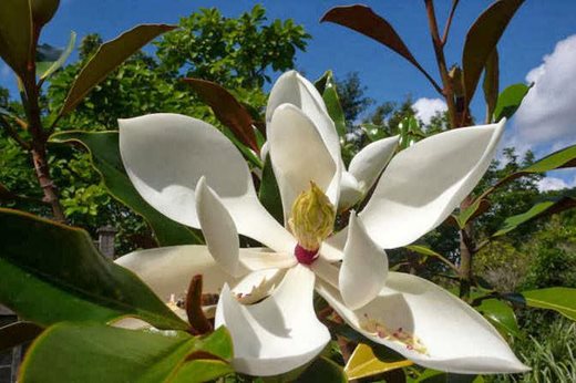 Magnolia grandiflora is a dramatic and imposing evergreen tree: the problem is that it can reach 18m and may wait some years after planting before it blooms. Magnolia grandiflora ‘Kay Parris’ makes a much smaller plant, and opens its huge, white spicily lemon scented flowers when still young. Best on a sunny wall, but takes some shade. Height to 2m (6.5ft). Hardiness rating H5.