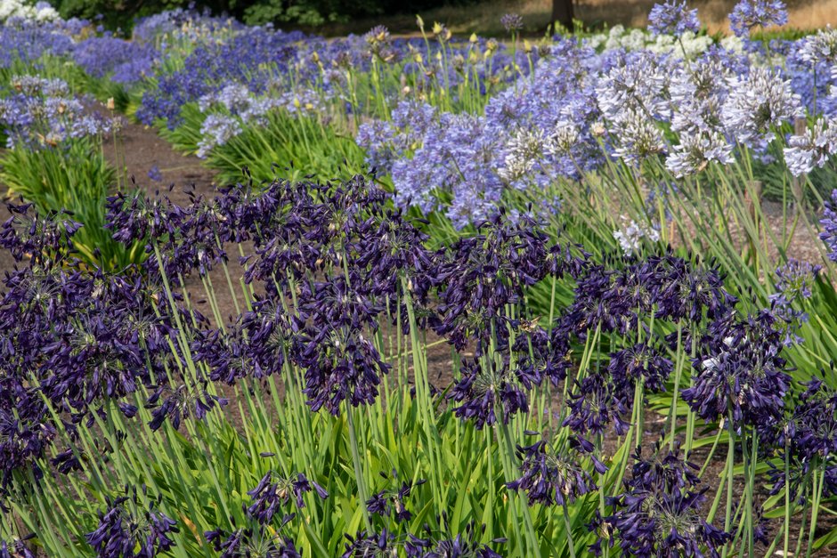 Agapanthus thrive in sunny spots and free-draining soil where they won’t be overshadowed by taller plants. As long as they have direct sunlight for some portion of day, these magnificent flowers will do well.