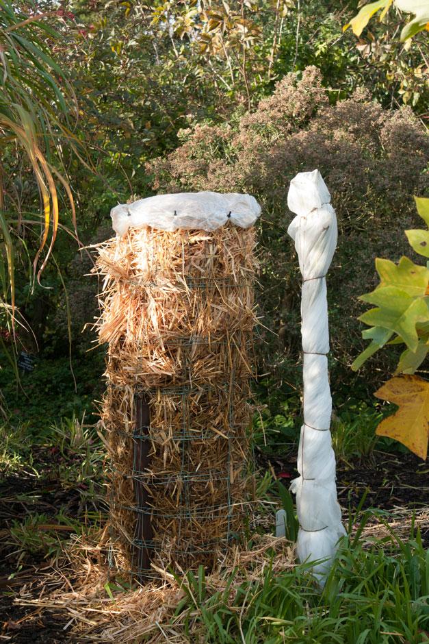 RHS Garden Harlow Carr in Yorkshire, says he has tried simplifying the number of steps - removing foliage, then creating a frame around the edge of the plant with chicken wire, filling it with straw and wrapping the whole thing with either fleece or hessian.