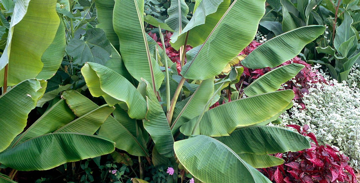 Although banana plants rarely flower or fruit outdoors in the UK, they still make eye-catching foliage plants with their dramatically large, tropical leaves.