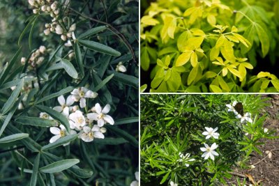 Leaves on choisya may be dark green or golden, so choose a colour you like and which will work well for the spot. Note that golden-leaved forms tend to be more green-yellow in shade. Also decide on leaf shape; some bear slender, narrowed leaflets, while others have broader leaflets, giving an overall fuller look to the shrub.