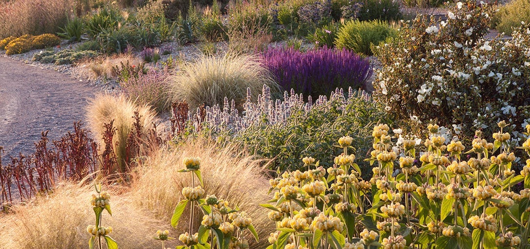 Cleomes can reach 1-1.5m, with pretty, palmate leaves and spiny stems. These are topped with large, airy flowerheads in shades of pink, white, purple or rose from mid-summer to autumn. The flowers’ spider-like appearance is created by their numerous, long, slender stamens.