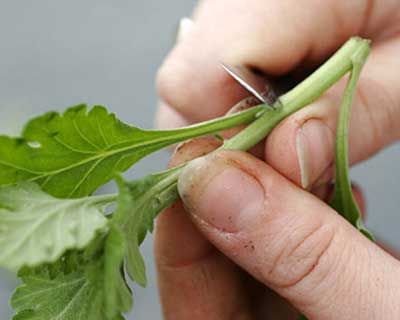 When the main stem gets to about 40cm (16in) tall, pinch out the tip, just above a pair of leaves. This will lead to branching at this point, resulting in a bushier plant.