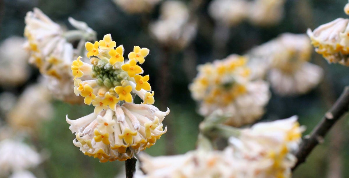In Japan, bark fibres from Edgeworthia are traditionally used to make high-quality paper, which explains the common name ‘paperbush’. The young stems are so flexible they can be tied into knots.