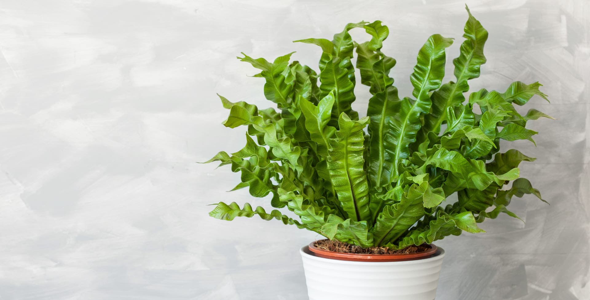 There are several different types popularly grown as houseplants, varying in appearance. The bird’s nest fern (Asplenium nidus) has long, glossy, unfurling fronds that form a shuttlecock shape. Hare’s foot ferns (such as Phlebodium aureum and Davallia canariensis) have thick furry roots that emerge from the pot and slender-stemmed fronds that are either narrow and glaucous or delicate, feathery green.