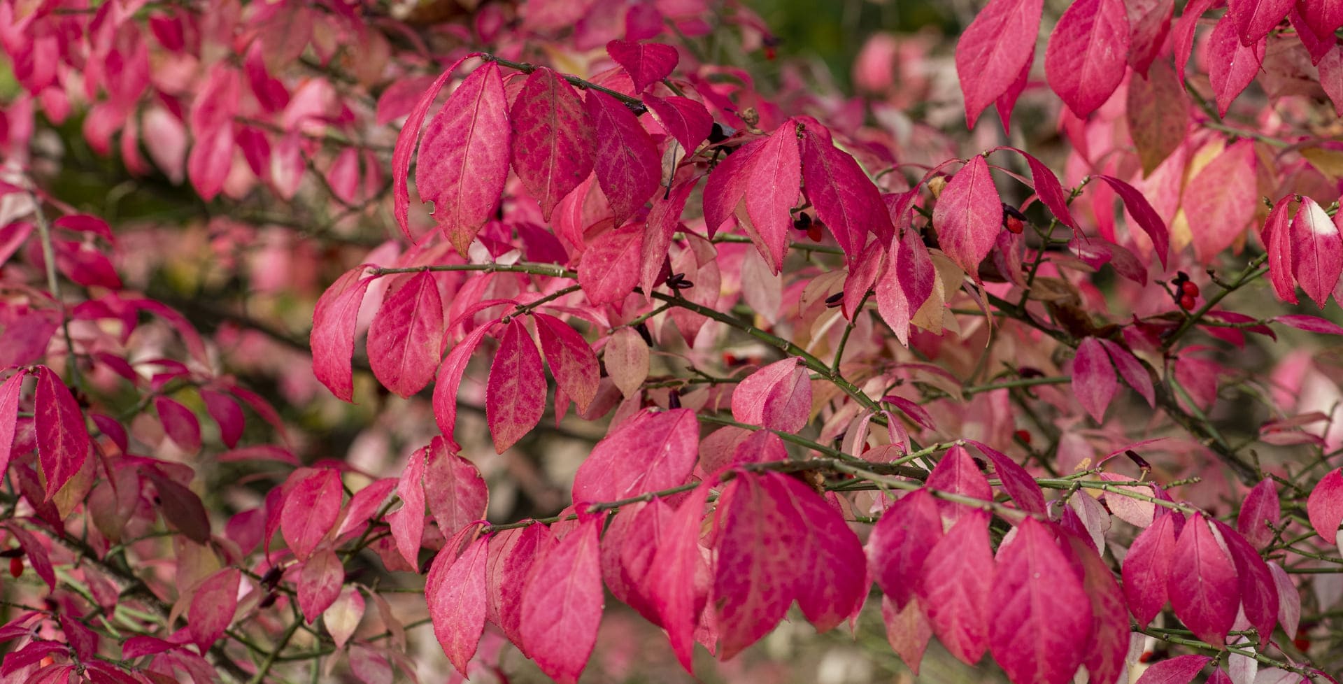 These bushy to upright shrubs or small trees produce red, pink or purple fruits that ripen in autumn, splitting to reveal showy orange seeds. Most also have fantastic autumn colour, with the leaves turning vibrant crimson before they fall. Older stems often have distinctive corky ridges or ‘wings’.