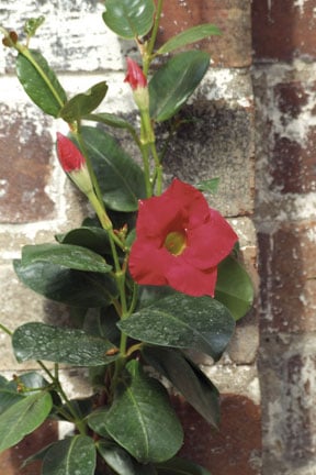 Mandevilla splendensAGM: yellow and white-throated, deep-pink flowers in summer. Height to 5m (16ft)